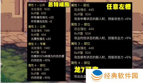 8、【恩特右槽】:“灼烧15%+3个异常5技攻”或者“灼烧15%+龙7可变+2个异常5技攻”。