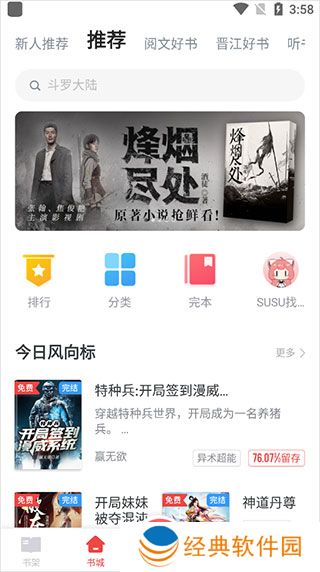 新人推荐、阅文好书、晋江好书、听书、上新、精选、男生、女生、出版等类型小说应有尽有