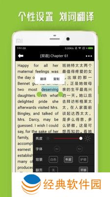 3、还可以成为英语学习的得力助手,当读者点击某个英文单词时,软件会弹出详细的词性、词义、例句等信息,就像随身携带了一本电子词典。