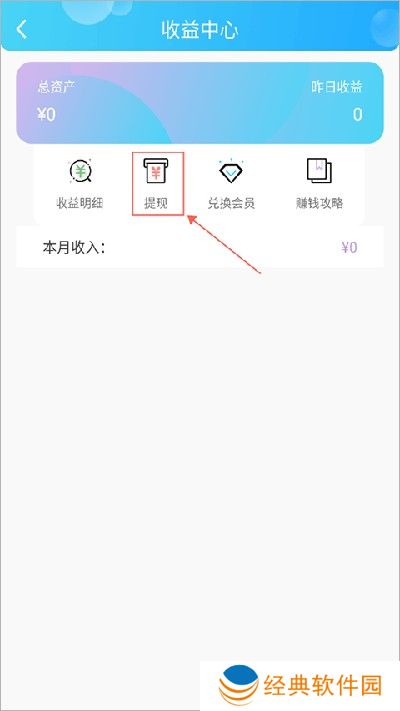 2、然后来到收益中心,点击“提现”选项
