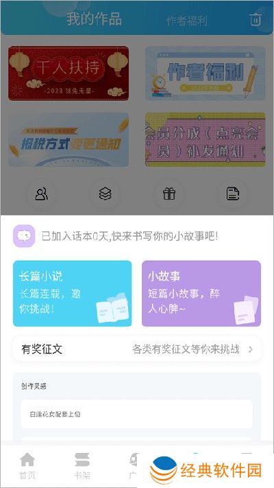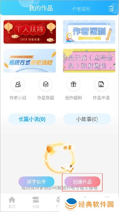 2、参加有奖征文活动:在写作页面下方的“创建作品”中,可以参与有奖征文活动,获得奖金和稿费。