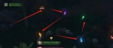 3、前往坐标(886,1294)处依次点亮土,火,雷,水开启宝箱获得第二个星星外观碎片。
