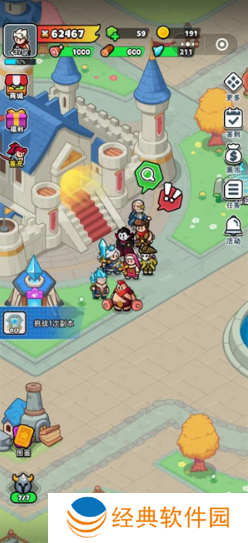 4、游戏中有三个常用的资源,分别是木头、蓝水晶、肉。木头是开图用的,存储上限会随着等级提升,推荐去3-2刷木头;蓝水晶主要用于升级训练营和副本等级,推荐去4-2刷;肉主要用于升级英雄,优先升级主力队伍,肉打副本里的小怪就能获得。