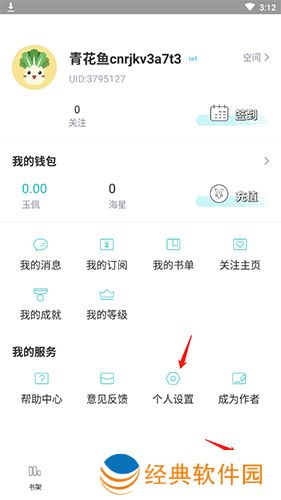 长佩阅读怎么换头像1、打开软件,点击底端的“我的”选项,然后点击“个人设置”选项。
