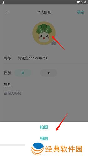 3、点击头像,你可以选择拍照或者从相册中获取照片。