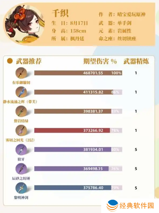点评:这把武器绝版了,但是跟千织轴对不起来,千织吃到的增伤有限