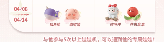 2、从4月1日起至4月7日期间,金喉咙将在三爪娃娃机中与大家见面。