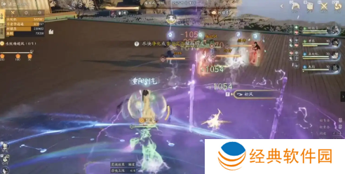 屏幕提示尽快净化时用轻剑净化技能,不然一个友方目标会被晕很长时间。没有轻剑有黄蓉也可以,黄蓉大招和应对技能都有净化效果。