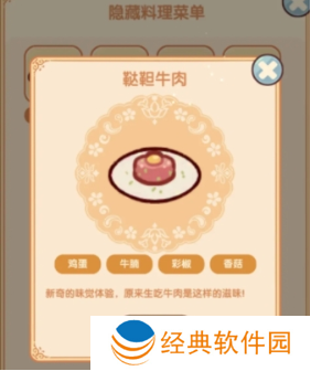 隐藏菜谱三:鞑靼牛肉=彩椒+香菇+鸡蛋+牛腩。