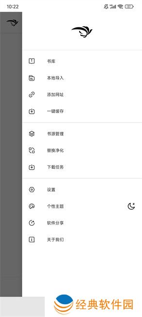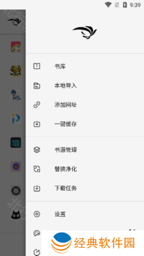 2、在侧边栏中能够导入书源,还可以设置UI和阅读习惯,并且能够管理下载资源