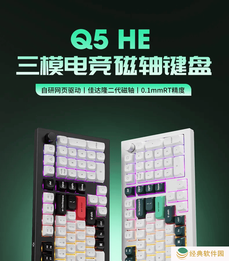 在外观设计上,Q5 HE同样不失为一款精品。其机身采用了6063铝材质,不仅坚固耐用,更在视觉上呈现出一种简约而不失高端的美感。同时,该键盘还提供了黑色和白色两种版本,满足了不同用户的审美需求。