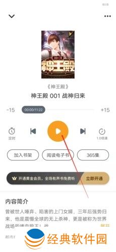 3、在听书页面中,点击中间的播放按钮,就能听书。