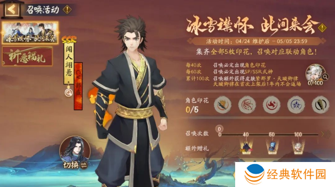 4月24日维护后-5月5日23:59大人可以选择SSR闻人翊悬SSR申屠子夜作为定向角色。