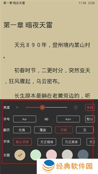 4、点击设置即可亮度,翻页效果字体大小等。