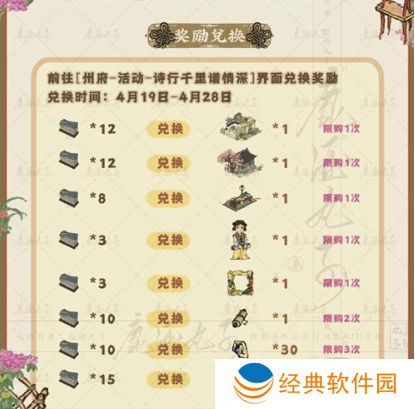 1、江南百景图墨香飘散作诗趣活动的主要玩法就是收集材料,以此来兑换活动好礼。
