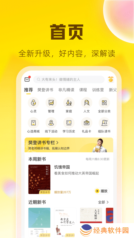 帆书app免费读书亮点1.每周一本书,每年50本书,展示包括图形、音频和视频在内的各个方面的经典作品,没有阅读负担!