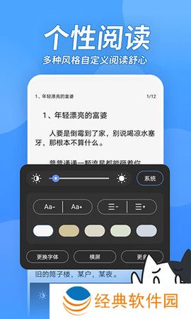 4、用户可以根据个人偏好调整字体大小、背景颜色、亮度等设置,提升阅读舒适度。