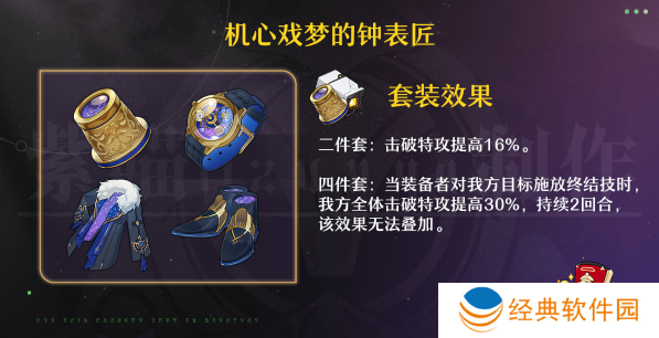 解析:这个套装组合提供击破特攻,是过渡用的套装,能够追求机心四件套还是建议用四件套。