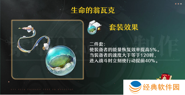 解析:这个套装常态提高能量回复效率,可以加快同谐主的充能速率,但这点其实只是添头单靠这个并不能进入下个充能阈值。套装的第二个效果可以让同谐主在战斗开局大量行动提前,基本上能够做到第一个行动,这个效果只需要120速就可以触发,适合需要开局先手的玩家。