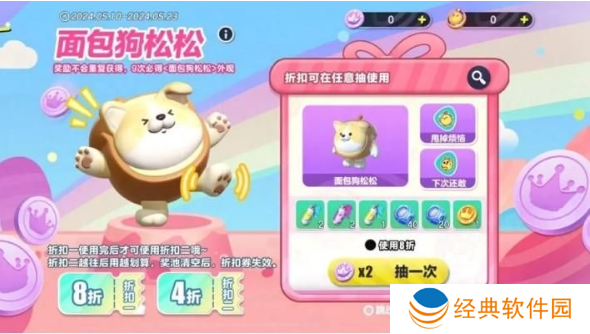 1、蛋仔派对面包狗松松活动在5月10日至5月23日进行开放活动,在活动开启,官方会为大家发放8折、4折优惠券;