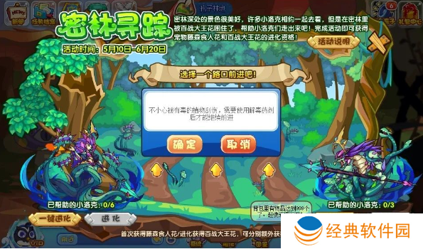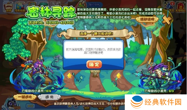累计帮助3位小洛克走出密林即可获得宠物“藤森食人花”!累计帮助6位小洛克走出密林即可解锁宠物“百战大王花”的超进化资格!