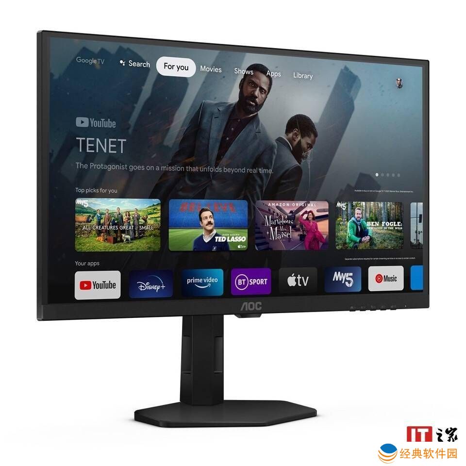 AOC将Q27G4XY定位为“智能游戏显示器”,内置了Google TV系统,为玩家提供了丰富的娱乐内容和便捷的操作体验。同时,该显示器还配备了内置扬声器,无需外接音箱即可享受高品质音效。其支架设计灵活,支持倾斜、旋转和升降调节,满足不同使用场景下的需求。显示器本体还支持VESA 100x100mm壁挂,方便用户进行个性化安装。