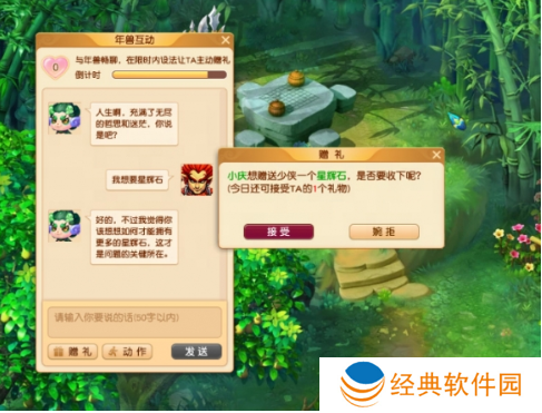 (3)年首页有属于自己的交际圈,我们可以通过打开好友日记(可在看门年兽处领取)查阅,互动成功的话,年兽宝宝会有好礼相赠。