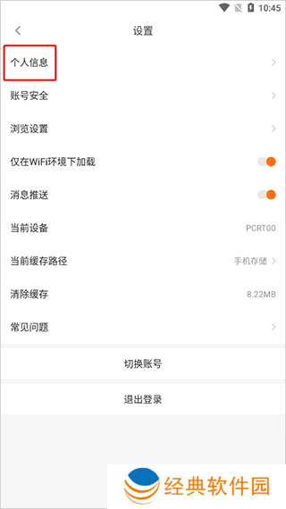 3、进入设置界面后,点击页面中的个人信息菜单;