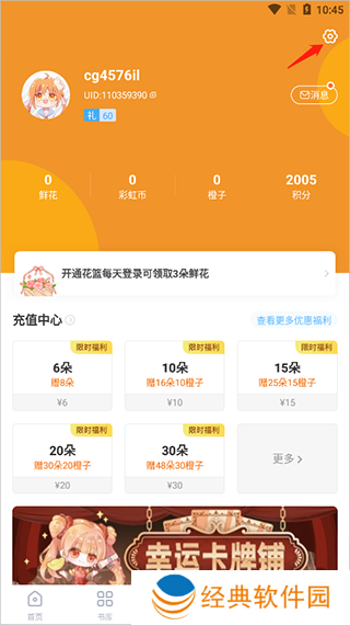 2、进入软件个人中心后,点击页面右上角的设置按钮;