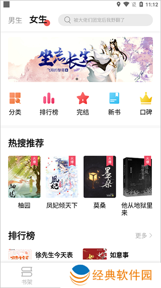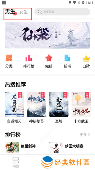 2、接着进入软件可看到在书库中提供了男生和女生两大块;