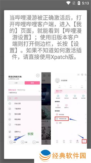 侧边栏的旧版,打开侧边栏,长按【设置】打开哔哩漫游设置