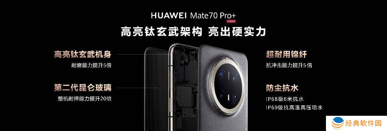 在可靠性方面,Mate 70系列首发高亮钛玄武机身,为手机提供全方位保护。正面第二代昆仑玻璃使抗摔能力提升20倍,背面超耐用锦纤材质则增强了五倍抗冲击能力。Mate 70 Pro+更是经过多道高温熔炼与精细工艺,打造出璀璨夺目且耐磨耐摔的机身。