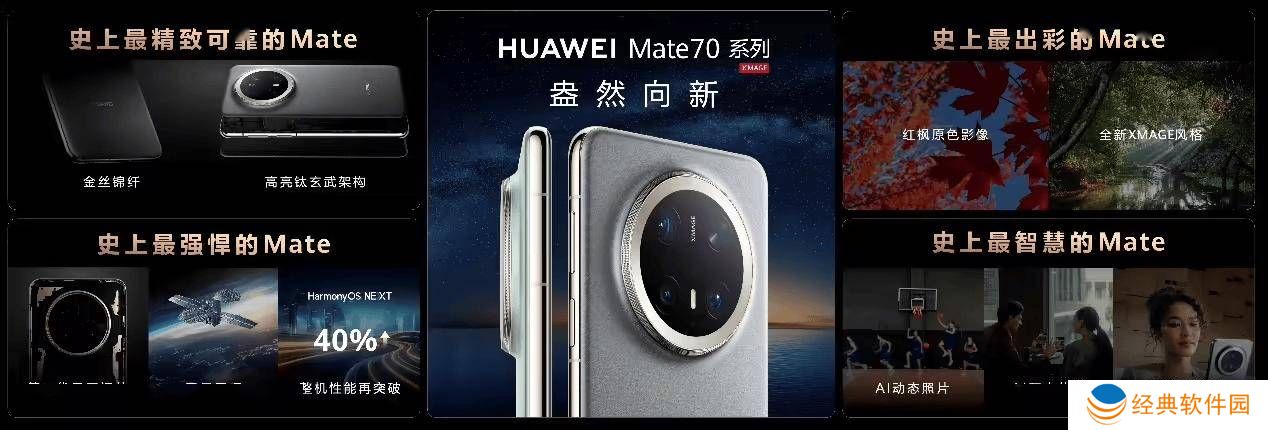 华为Mate 70系列新机可直接升级HarmonyOS NEXT,带来原生精致、原生互联、原生智能、原生安全及原生流畅五大升级体验。同时,首发九大AI功能,如AI隔空传送,实现照片传输的便捷操作。从Mate 40系列的胡杨精神,到Mate 50系列的昆仑精神,再到Mate 60系列的同心聚力,Mate系列始终贯穿着坚韧不拔、勇于探索的品质。如今,Mate 70系列成功打破“缺芯少魂”困境,成就真正意义上的全自主研发旗舰。