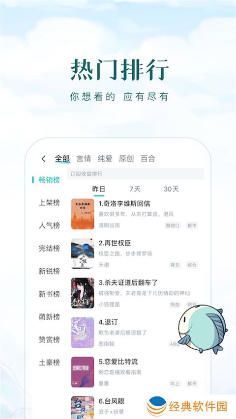 4.实时小说更新:实时获取互联网上最新、最热门、最经典的小说;
