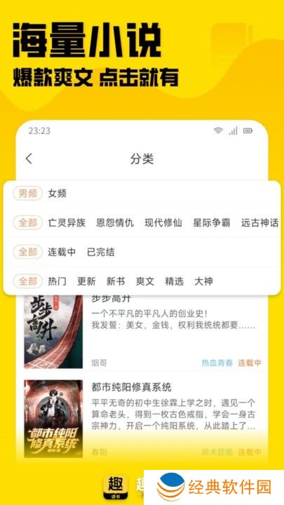 软件特色1、小说分类非常详细,提供著名经典作品,引导用户感受文学的魅力,从而更方便地找到自己需要的小说。
