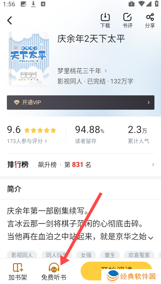 2、接着点击下方的“免费听书”,如图所示。