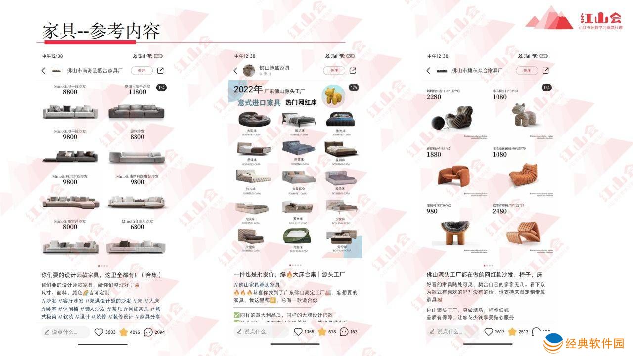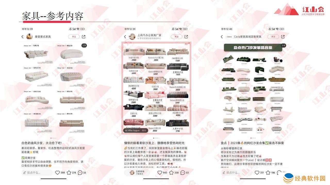 在家具行业,报告指出,封面图多采用九宫格或十二宫格形式,以展示产品或辅助场景,标题则倾向于“风格+数字+品类+款式”或“数字+品类+场景描述”的结构。例如,“2023年设计师精选高颜值沙发”等笔记,通过精美的拼图和吸引人的标题,成功吸引用户眼球。