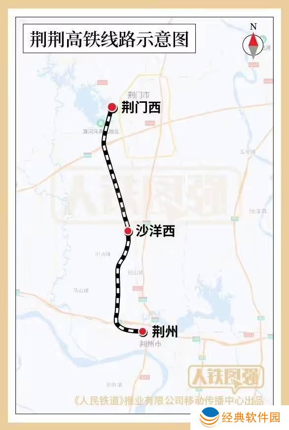 荆荆高铁全长达77公里,设计时速高达350公里,自北向南连接了沿江高铁武汉至宜昌段的荆门西站和汉口至宜昌铁路的荆州站。全线共设有三座车站,分别是荆门西站、沙洋西站和荆州站,其中荆门西站和沙洋西站均为新建站点。