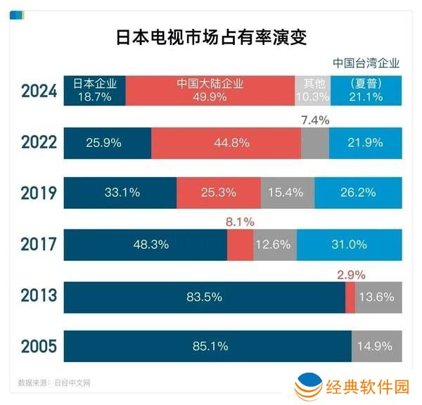 近年来,中国电视品牌在国际市场的表现尤为亮眼,尤其是在日本市场,其影响力日益增强。最新数据显示,中国大陆及中国台湾的电视企业在日本市场中的份额总和已超过七成,相比之下,日本本土电视企业的市场占有率则不足两成。