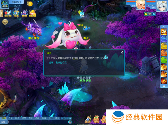 当与仙灵大使对话后,她会打开仙灵秘境的入口,玩家由此踏上充满奇幻色彩的冒险征程。在秘境中,玩家会遭遇五只被魔化的老虎袭击的小仙灵,这时需挺身而出,与魔化老虎展开激烈搏斗,将小仙灵们解救出来,从而与之结缘。