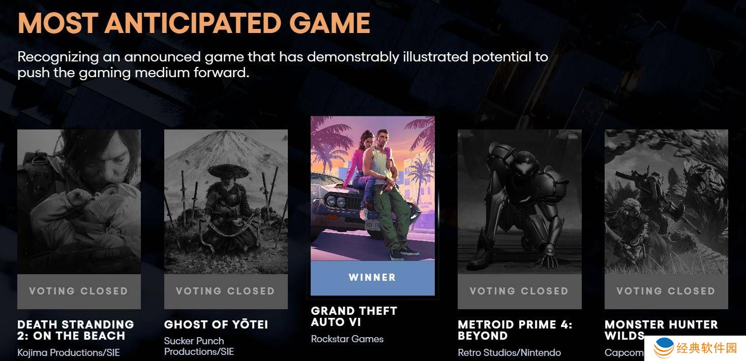 与《GTA 6》一同角逐该奖项的还有《死亡搁浅2》、《密特罗德4》、《怪物猎人:荒野》以及《羊蹄山之魂》等多款佳作。这些游戏均出自各大知名游戏制作公司之手,不仅拥有高水准的制作质量,更在市场上引发了广泛关注和热烈讨论。