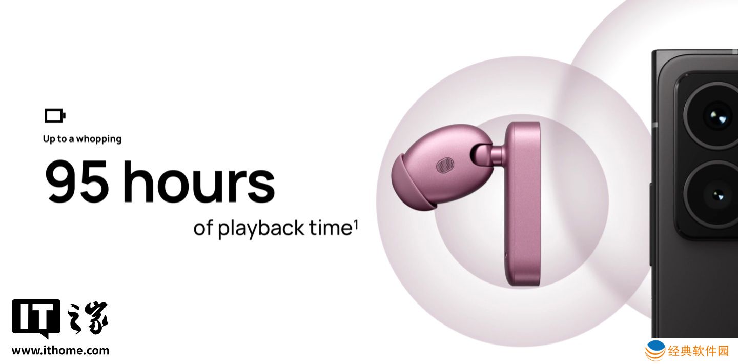 该耳机支持混合ANC / ENC 降噪,支持IP54抗水防溅,充电盒配备1600毫安时电池,单耳机配备35毫安时电池,号称搭配充电盒续航至高95小时。