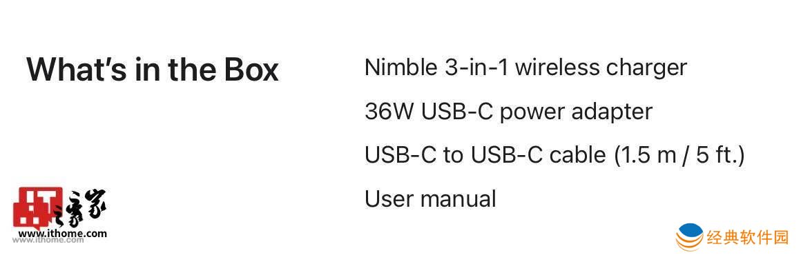 更为便捷的是,购买这款充电基座的用户无需再额外购买充电头和线缆。因为基座已经配备了一个36W的USB-C充电头以及一条长达1.5米的充电线缆,这些配件的加入无疑提升了用户的使用体验。