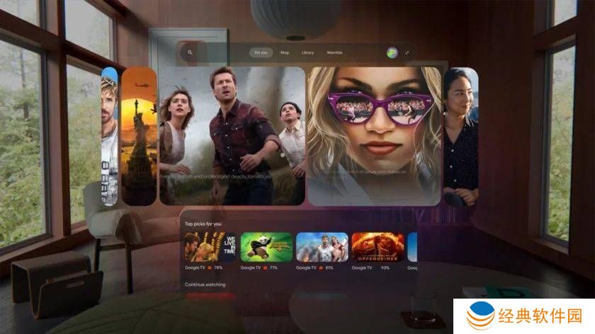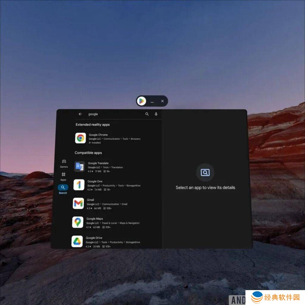 在应用兼容性方面,谷歌Play应用商店已经开始对XR应用进行过滤,并展示了与Android XR兼容的应用。这些应用界面采用了平板电脑UI模式,上方设有标题栏,用户可以方便地最小化或关闭窗口,这样的设计使得XR设备在应用体验上更加灵活和便捷。