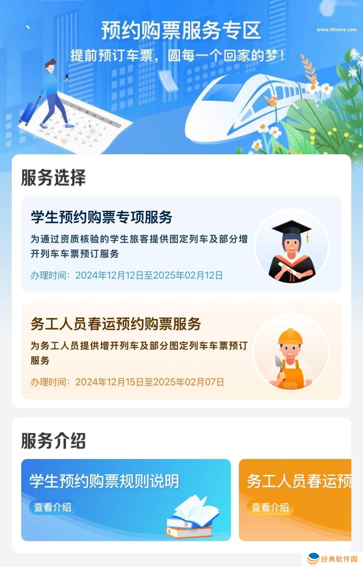 铁路12306客户端还为学生旅客提供了特别的服务。自12月12日起,至2025年2月12日结束,符合条件的学生旅客可以通过预约购票服务专区,提前预订2024年12月28日至2025年2月28日期间的火车票。这一服务极大地便利了学生群体,使他们能够更轻松地规划假期行程。