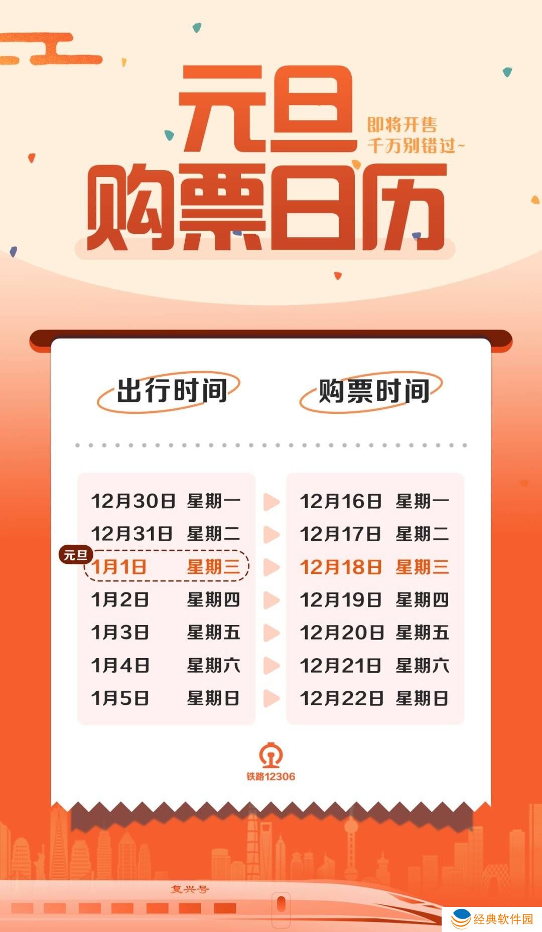 近日,随着2025年元旦假期的日益临近,中国铁路客户服务中心12306发布了最新的购票时间安排。根据公告,自本月16日起,乘客已经可以开始预订12月30日的火车票。紧接着,从17日开始,12月31日的票务也面向公众开放;而到了18日,元旦当天,即1月1日的火车票也正式进入预售阶段。