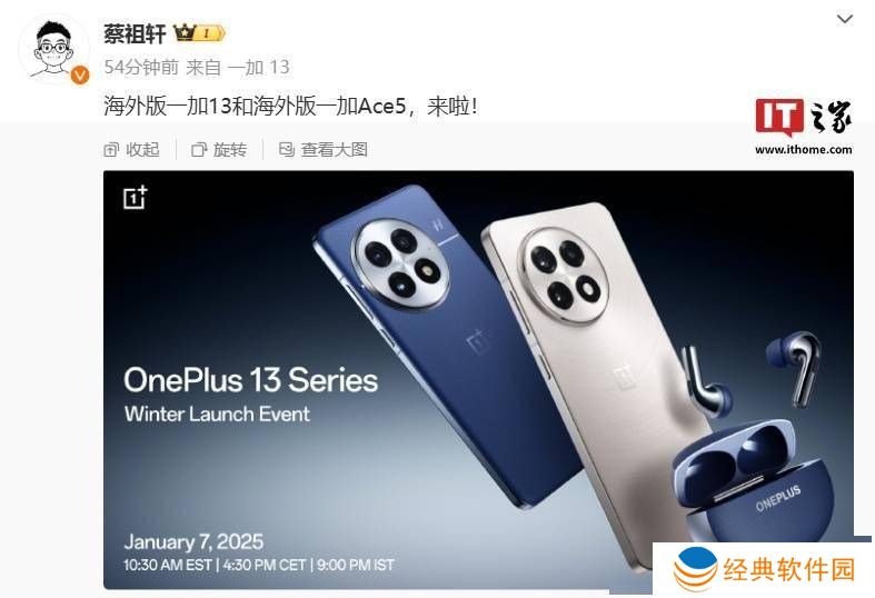 近日,一加手机的新品发布计划被其内部员工@蔡祖轩在社交媒体上提前曝光,引起了广泛关注。据其透露,一加将于2025年1月7日正式发布海外版的一加13和一加Ace 5手机。