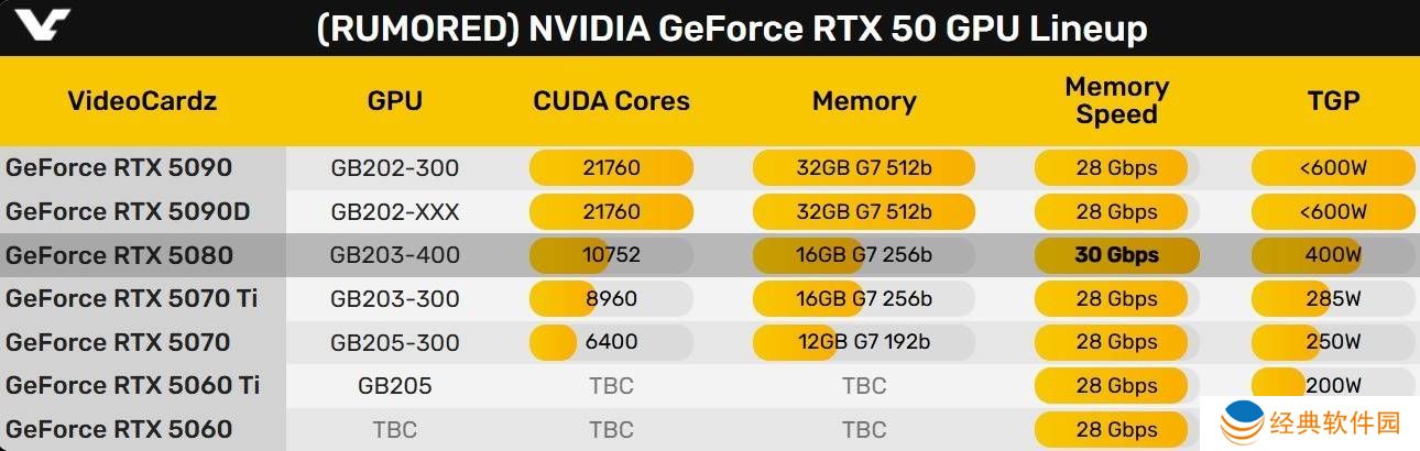 近期,英伟达RTX 50系列显卡的详细规格信息逐渐浮出水面,其中RTX 5080凭借其在显存频率上的卓越表现,引起了广泛关注。这款显卡虽然显存容量不是系列中最高的,但其等效显存频率高达30GHz,这一数据无疑为它在性能榜单上赢得了显著的一席之地。