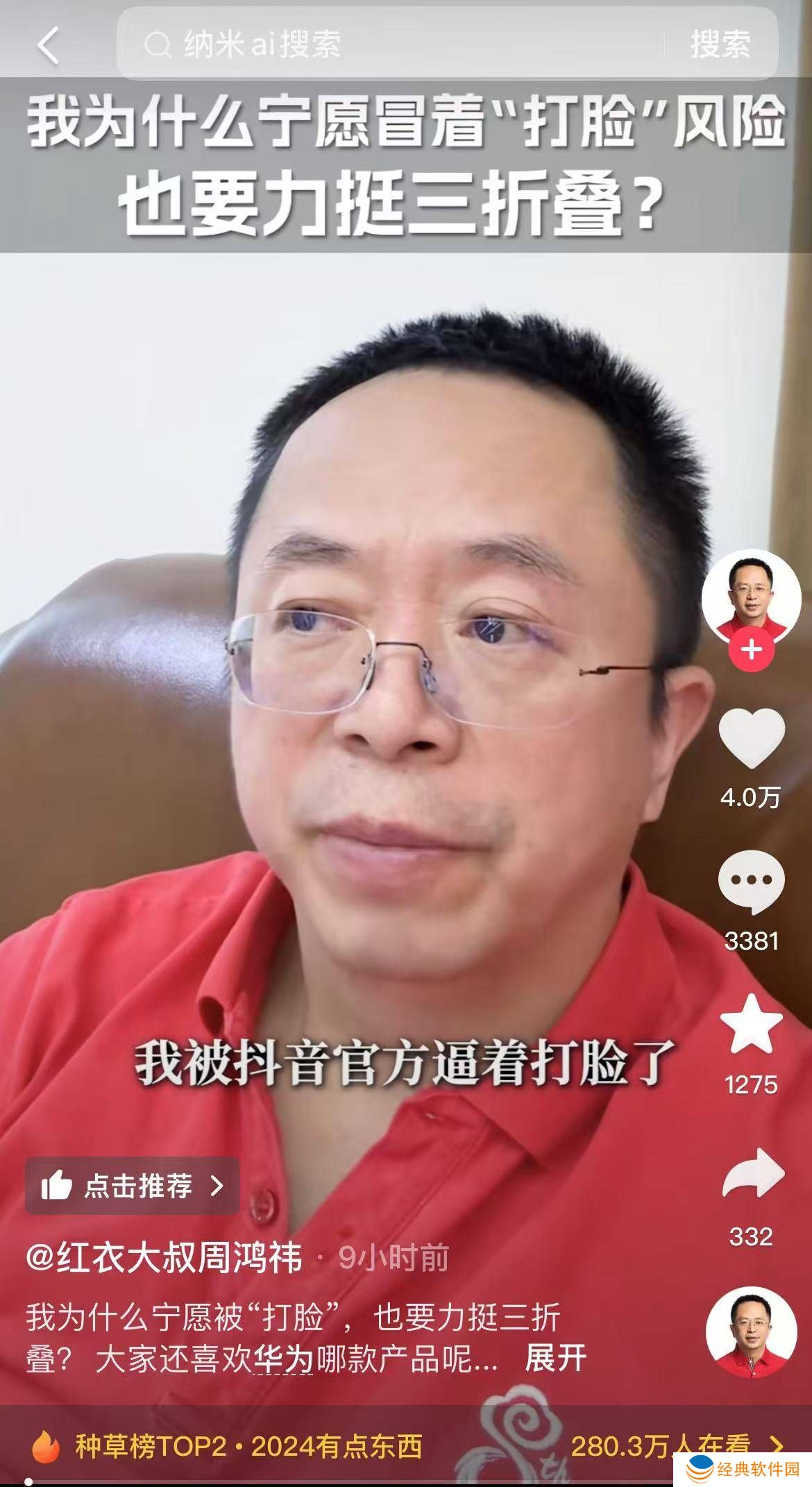 在视频的结尾部分,周鸿祎进一步阐述了自己的观点。他说,他力挺三折叠手机,实际上是在支持国内科技创新的进步。这一表态不仅展示了他对科技创新的热爱,也体现了他对国内科技企业的期待和支持。