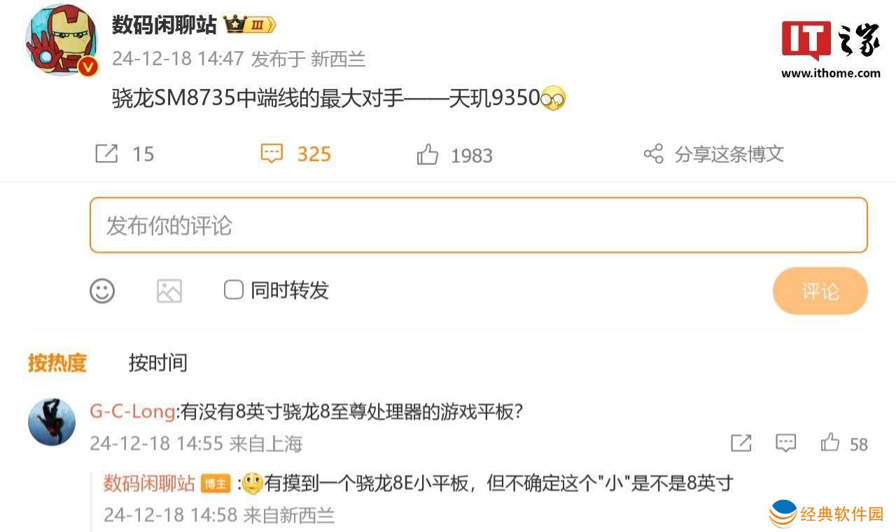 该博主在与网友互动时还透露,自己有机会接触到一款搭载高通骁龙8 Elite处理器的小平板。尽管目前尚不清楚这款平板的具体屏幕尺寸,但“小”字似乎暗示其可能采用了8英寸左右的显示屏。这一消息无疑为期待高性能平板设备的用户带来了新的期待。